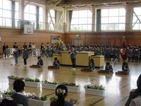 入学式では校長より、「げんき(元気)、ほんき(本気)、やるき(やる気)の3本の木をそだてましょう。」という内容の式辞がありました。