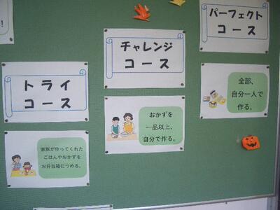 先週から、保健室の廊下側の掲示板には、上のような掲示物と弁当作りに参考となる