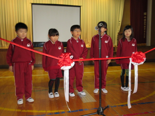 2015年11月24日 07時26分 11月20日(金)子どもたちが、心待ちにしていた校庭遊具の更新工事が完了し、供用開始に伴うオープニングセレモニーを行いました。