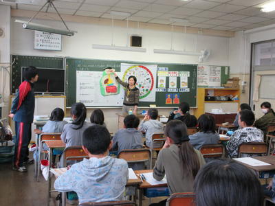 東部給食センターから栄養教諭を招き、食に関する授業がありました。今日のテーマは「朝ご飯の働きを知り、自分の生活を振り返ろう」でした。