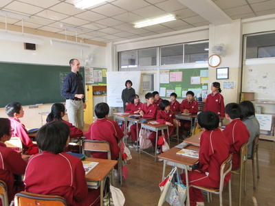 EAAを迎え、4年生の外国語活動が行われました。「文房具」の英語での言い方を学びました。
