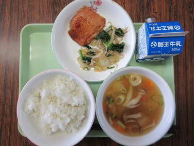 鶏肉照り焼き、ほうれん草のおかか和え、みそ汁、ご飯、牛乳