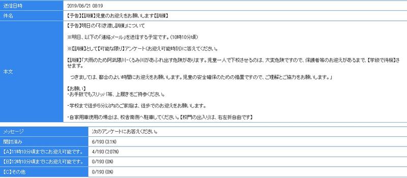 2019年6月21日 22時00分【予告】【明日の引き渡し訓練】※お迎え可能な方は、11時10分までに体育館にお越しください。(詳細については、5.30配布のお知らせのとおり)