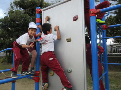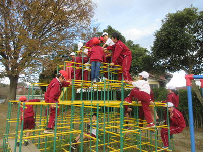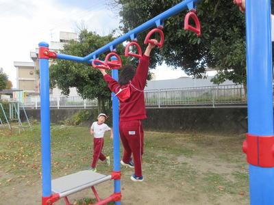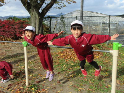 <鉄棒遊び「布団干し」>