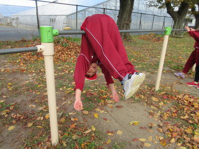 <鉄棒遊び「豚の丸焼き」または「ナマケモノ」>