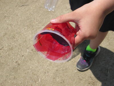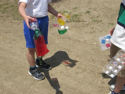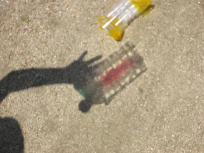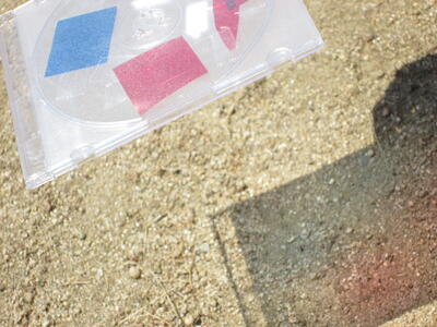 みんなそれぞれに、家から透明な素材を持ってきたとのことで、素材の模様の影を楽しんだり色セロハンを貼って色を映してみたり。