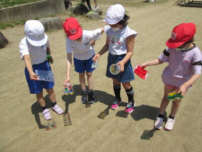 太陽光を生かして、思い思いに美しさを発見して楽しむ子どもたちでした。