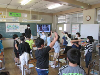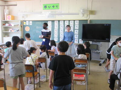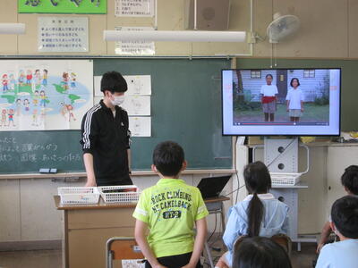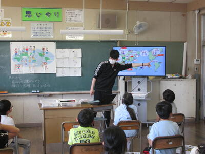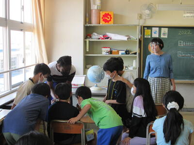 ほかの学年に行ってみると、4年生では、子どもたちと担任の先生が外国語活動の授業を行っていました。