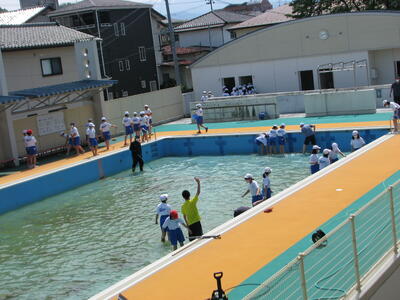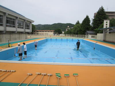 これから、時間をかけてプールに水をため、授業開始に向けて準備を整えていきます。