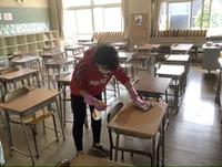児童の下校後は・・・ 2020年5月13日 11時56分 児童下校後、職員で除菌作業を行います。 机や扉、トイレ等も念入りに作業して、児童が安心して登校できるようにしています。 県内での感染は4日連続0ですが、油断せずに、安心・安全のために先生方が取り組んでくれています。