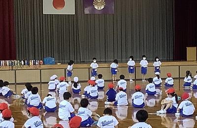 1年生となかよくなろうの会 2020年6月8日 09時55分 2年生から1年生に渡利小学校の紹介やアサガオの種と手作りのメダルのプレゼントがありました。感染症予防のために体育館で短時間で行いました。今日出会ったお友達と早く一緒に活動できるようになることを願っています。