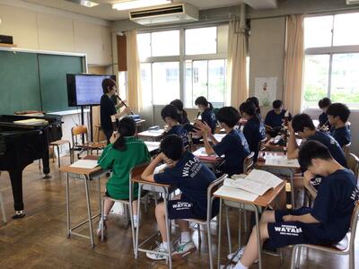 4校時に2年生の国語科で校内授業研究会を行いました。