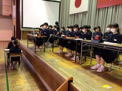 本日の5校時には、第1回生徒総会が体育館で開催されました。タブレットに入れられた要項に基づいて、各専門委員会や部活動の年間活動計画が専門委員長や部長から発表され、今年度の生徒活動について確認し、見通しをもつことができました。