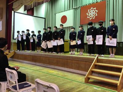 また、その後の全校集会では先日行われた県北陸上大会等の表彰が行われ、全校生で活躍を讃えました。