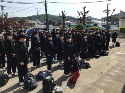 本日は6校時目に今年度初めての避難訓練が行われました。今回の訓練の目的は新教室からの避難経路の確認と安全かつ迅速な避難でしたが、全校生徒が本番さながらの真剣な取り組みで訓練に臨むことができました。緊急の時こそ冷静になって、放送や指示にしっかりと耳を傾け、自分の命を自分でしっかりと守れるようにしてほしいと思います。