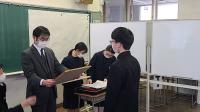 また、生徒総会終了後は、表彰を行いました。作文関係の表彰では、自分の書いた作文にイラストレーターが描いたイラスト入りの額を副賞でいただいた生徒もいました。受賞した生徒の皆さん、おめでとうございます。