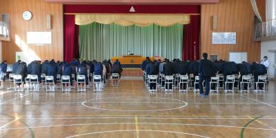 2月19日(金)、3年生が1回目の卒業式の練習を行いました。初回の今日は式の流れや礼の仕方など、式全体に関わる大きな部分について練習しました。今後の練習では証書授与や入退場の練習などを行う予定です。感染対策講じながらも、厳粛な中にも思い出深い卒業式になればと思います。