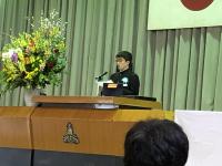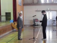 入会式では、同窓会会長の半澤邦雄様と父母と教師の会会長の遠藤嘉邦様から卒業生に向けて、入会を歓迎するお言葉をいただきました。卒業生を代表して若林さくらさんが記念品をいただき、上竹遙己君が誓いの言葉を述べました。