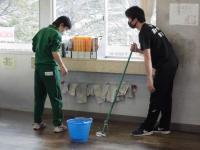 美化委員の生徒を中心に、教室の床にワックスを塗布しました。長い歴史のあるやや色あせた床ですが、とても丁寧にワックスを塗ったおかげで、どの教室の床も夕日に輝いて見えました。
