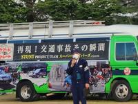 今回の交通安全教室では、プロスタントマンのスーパードライバーズのみなさんにご来校いただき、実際の交通事故の再現をしていただきながら、交通ルールを守る大切さについて教えていただきました。