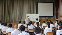 全校生に向け、放送で着任のあいさつと「命を大切にすること」「夢や希望を持ち、将来の自分を思い描くこと」について話がありました。1校時目には全学級を回り、生徒たちに直接あいさつをされました。