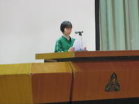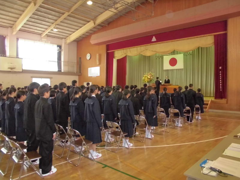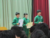 書きぞめ展などの賞状授与のほか、今年度の部活動の反省や卒業式へむけての生徒発表がありました。