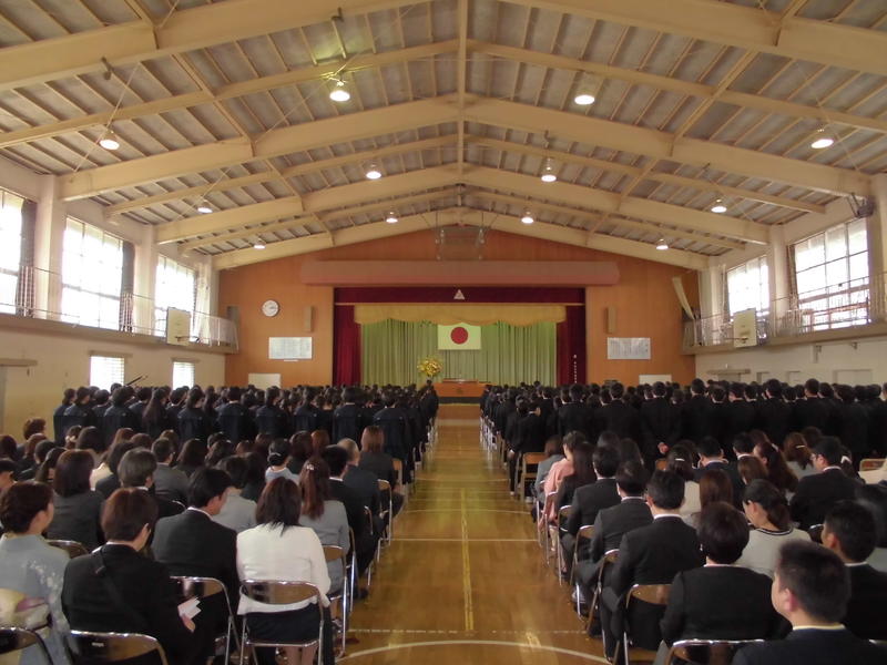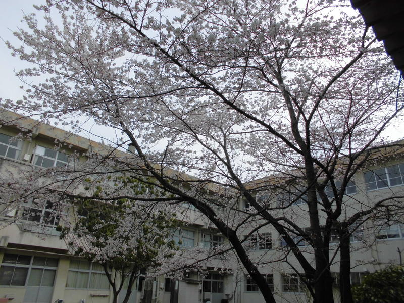 13:45からは、第73回入学式を厳粛かつ盛大に体育館で行うことができました。中庭の桜と校門のしだれ桜が満開の中、新入生と保護者の皆様が登校されました。在校生が見守る中、新入生はキラキラと目を輝かせながら、あこがれの中学校生活に期待を抱き、入学式に臨んでいました。
