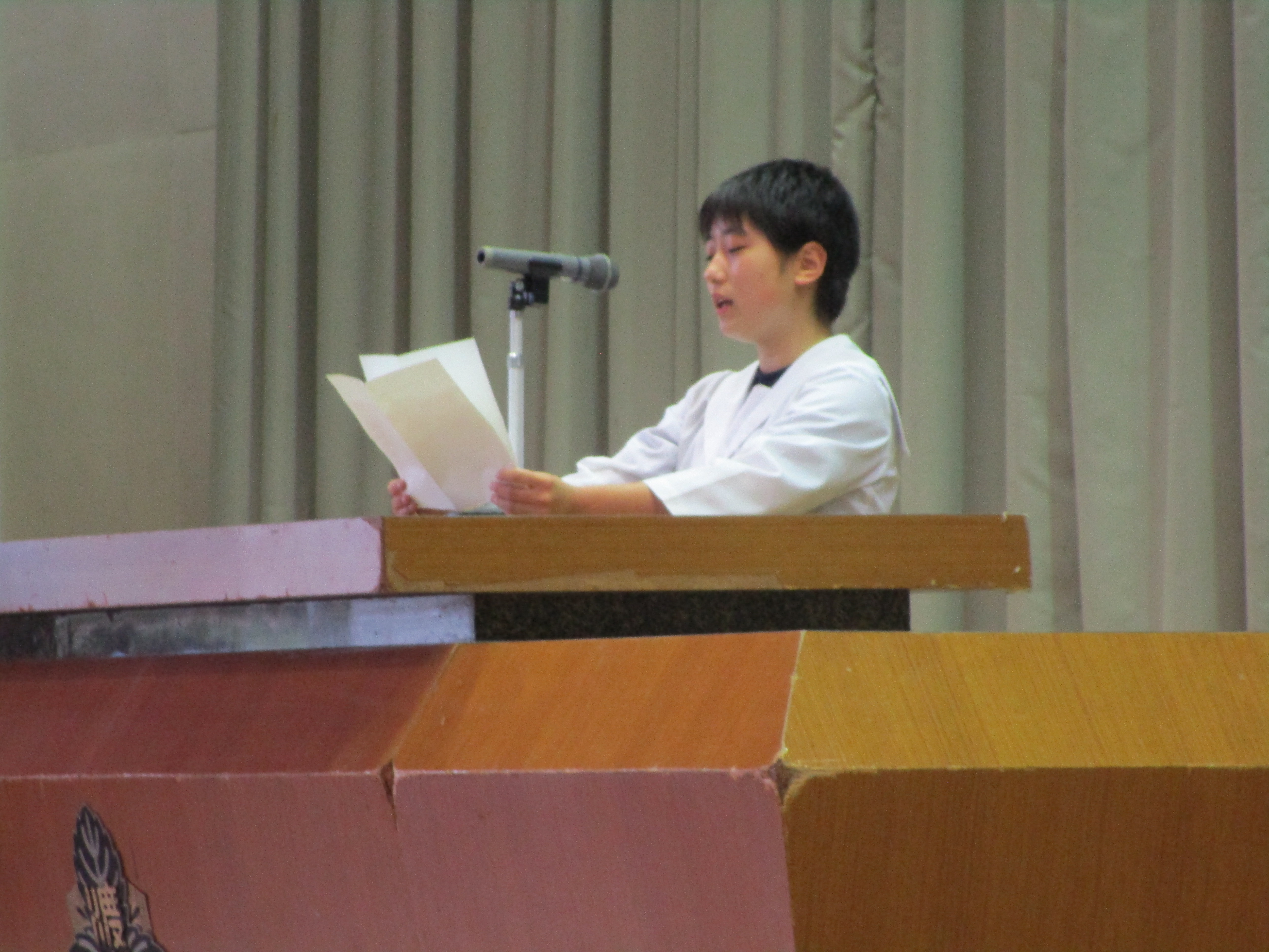 最後に中体連新人大会に向けて3年生からのメッセージや2つの部活動から大会に向けての決意表明がありました。