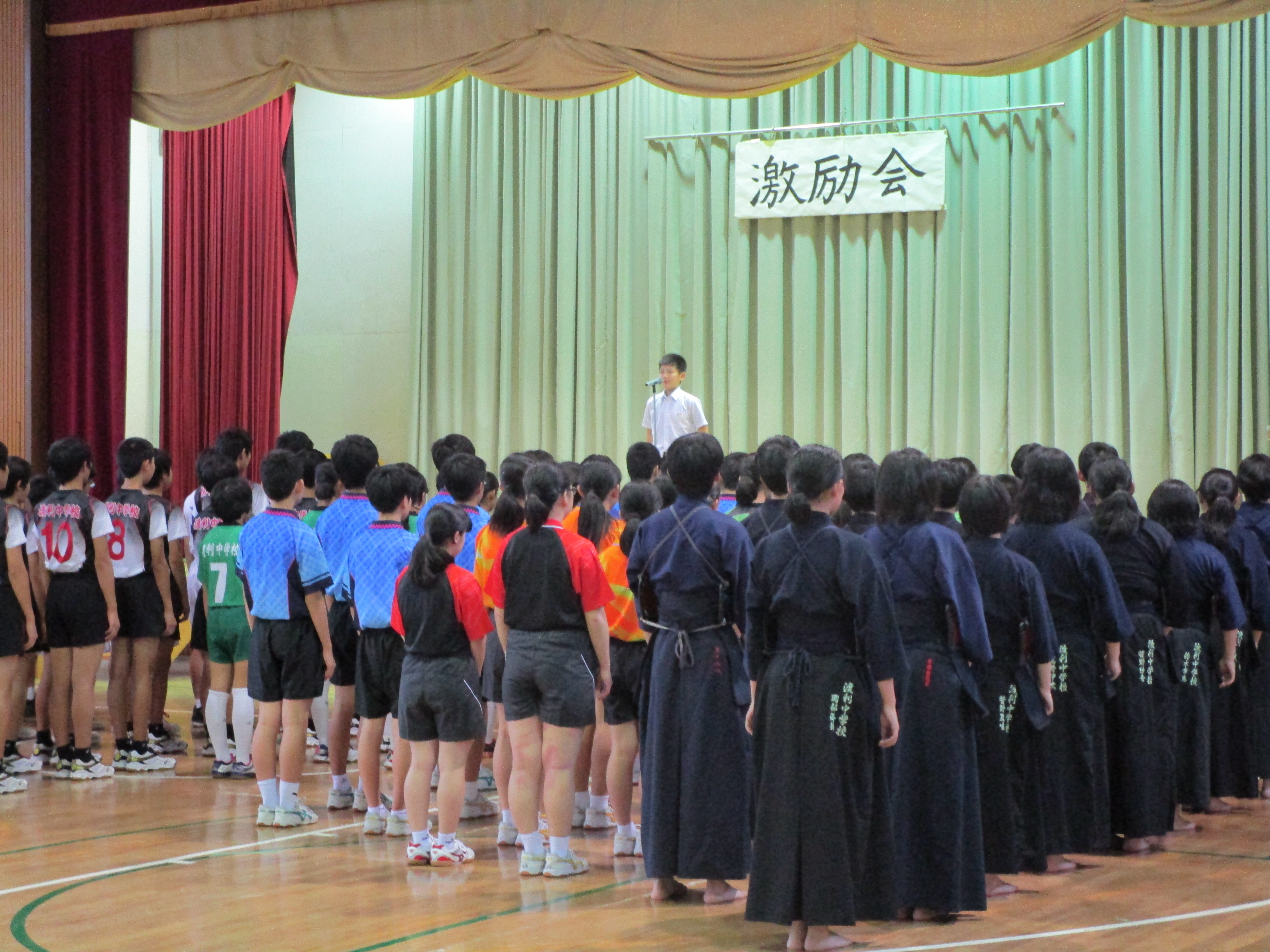9月21日(金)に支部中体連新人戦に参加する生徒の激励会を行いました。