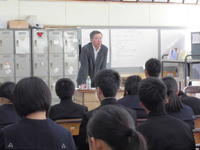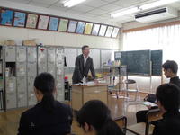 10月1日(火)、渡利学習センターの森合正典館長を講師にお招きし、3年生を対象に講話をいただきました。「実・湧・満・彩 渡利地区」という演題で、渡利地区の歴史や名所などについて詳しくお話をしていただきました。地域の良さや、素晴らしさを再確認する良い機会となりました。