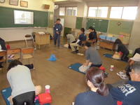 5月8日(水)、午後から教職員を対象とした救命講習会を行いました。講習会では心肺蘇生法、AEDの使用法、止血法、気道異物の除去の4項目について、福島市消防署の職員の方から講習を受けました。緊急時の対応について全職員で学ぶことができました。