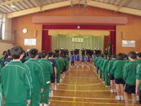 5月10日(金)県北地区中学校体育連盟陸上競技大会に参加する生徒の激励会を本校体育館で開催しました。生徒会長・校長先生から激励の言葉があり、陸上部のキャプテンから「みなさんの応援に答えられるよう、今までの練習の成果を十分に発揮して頑張ってきます!」とお礼の言葉がありました。その後、応援団の先導によるエールを全校生徒で送りました。