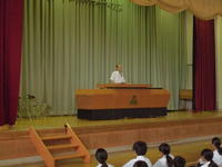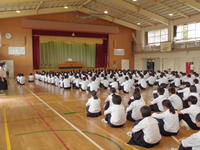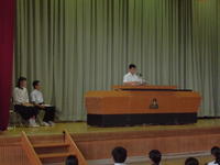 7月19日(金)第1学期終業式を行いました。校長先生からは、第1学期の反省をしっかりすること、渡利中の生徒の善行の紹介と家庭学習と自主学習について、最後に夏季休業中は、「自分の時間割をつくる」ということについて話がありました。その後、各学年の代表生徒から「1学期を振り返って」という内容で発表がありました。夏休み中も、事件事故に巻き込まれないようにしながら、健康に留意して楽しく充実した休みにして欲しいと思います。
