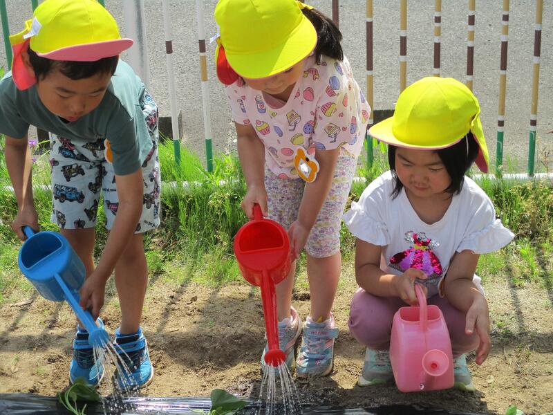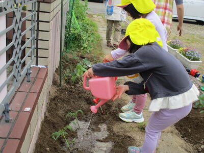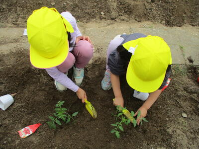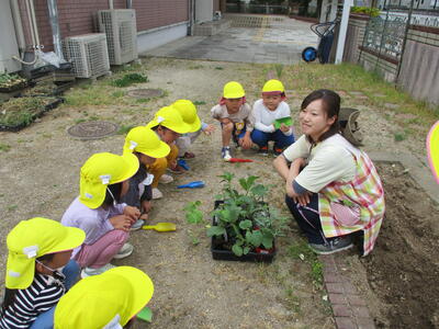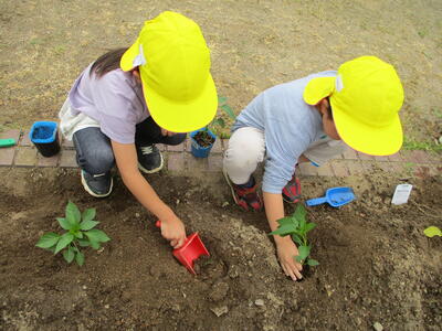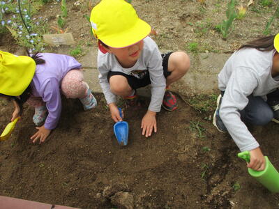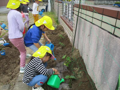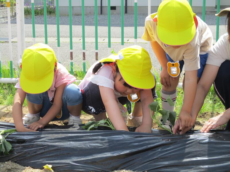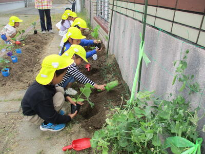 年長ほし組の子どもたちが、野菜を植えました。