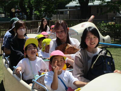 晴天にも恵まれ、いろいろな乗り物に乗ったり、遊具で遊んだりして、楽しく過ごすことができました。