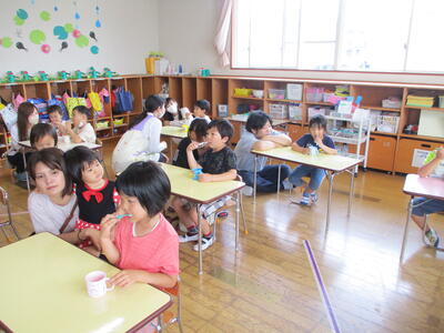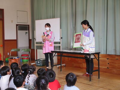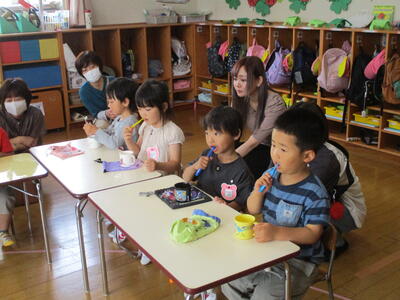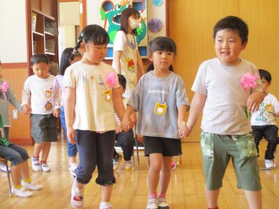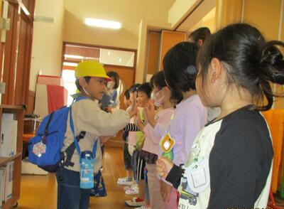 本年度初めてなので、今回は、年長ほし組の子どもたちが教えてもらいました。