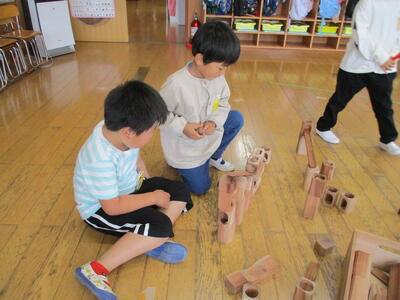 今年度、第1回目の岡山幼稚園との交流活動を渡利幼稚園で行いました。