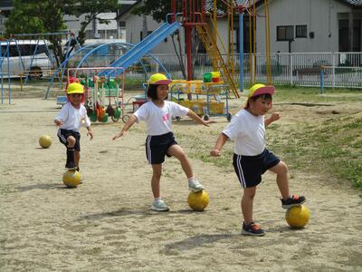 ボールを使った運動やミニゲームをして楽しく体を動かし、子どもたちは、汗びっしょりになりました。
