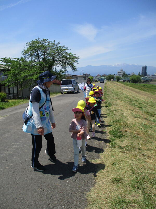 年長ほし組が阿武隈川の河川敷へ園外保育に出かけました。