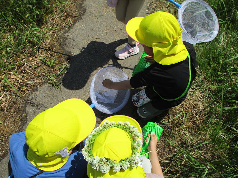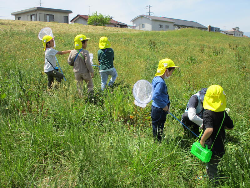 子どもたちは、虫捕り網を持って、思いっきり走りまわっていました。