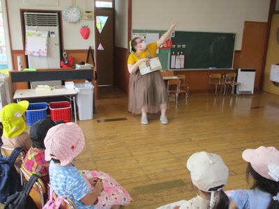 出身地のカナダの話をしてくれたり英語と日本語を交えて絵本の読み聞かせをしてくれたりしました。