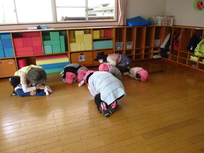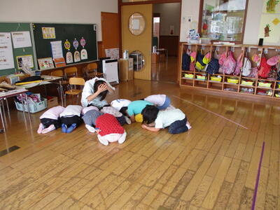 避難訓練を行いました。地震を想定した訓練でした。訓練当日の早朝にも地震がありました。子どもたちの何人かは気づいたようでした。3月に起きた大きな地震の話もしました。