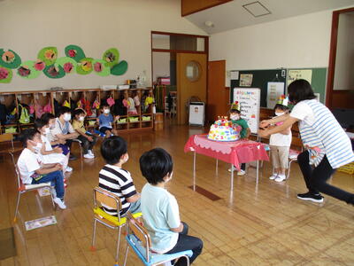 第1回目は、4・5月生まれの園児をお祝いする誕生会です。