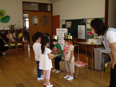 年少もも組2名、年長ほし組2名の園児をお祝いしました。
