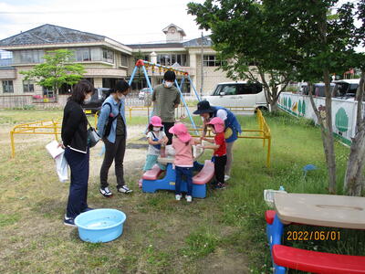 園児たちは、いろいろな遊びに興味をもって活動していました。