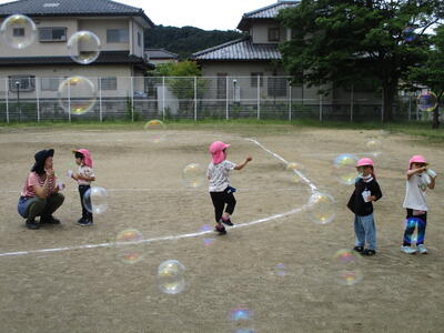 シャボン玉遊びもしました。たくさんのシャボン玉を作ることができました。