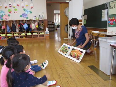 2022年6月28日 15時55分年長(ほし)組が、渡利小学校で給食体験をしました。