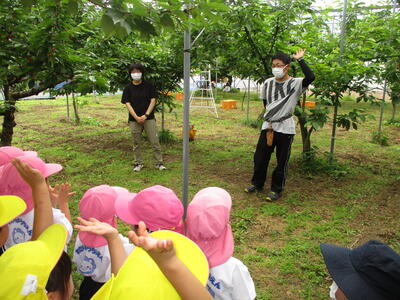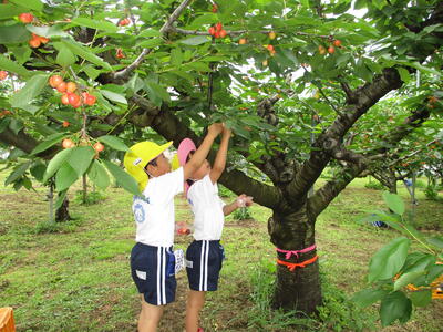 昨年度、お子さんが卒園した保護者でもある佐藤昌輝様がサクランボ畑を開放してくださいました。