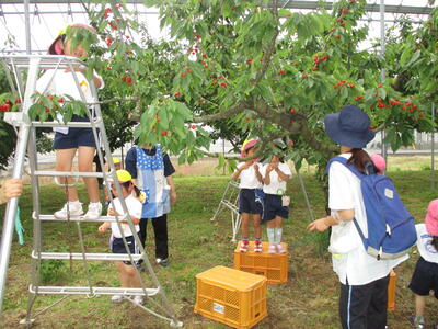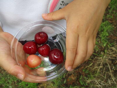 子どもたちは、大喜びでサクランボをとり、食べていました。甘くてとてもおいしいサクランボでした。