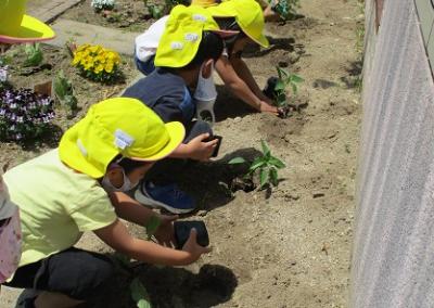 5月12日、自分たちで植えたい野菜を考え、選んで植えました。